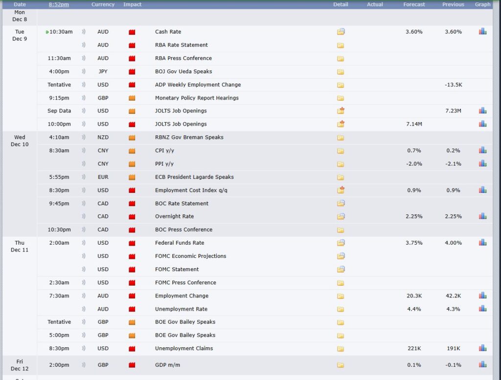 Welcome back! Here are the most important economic events from December 9th to 12th, including a major update on the Federal Reserve’s interest rate decision.