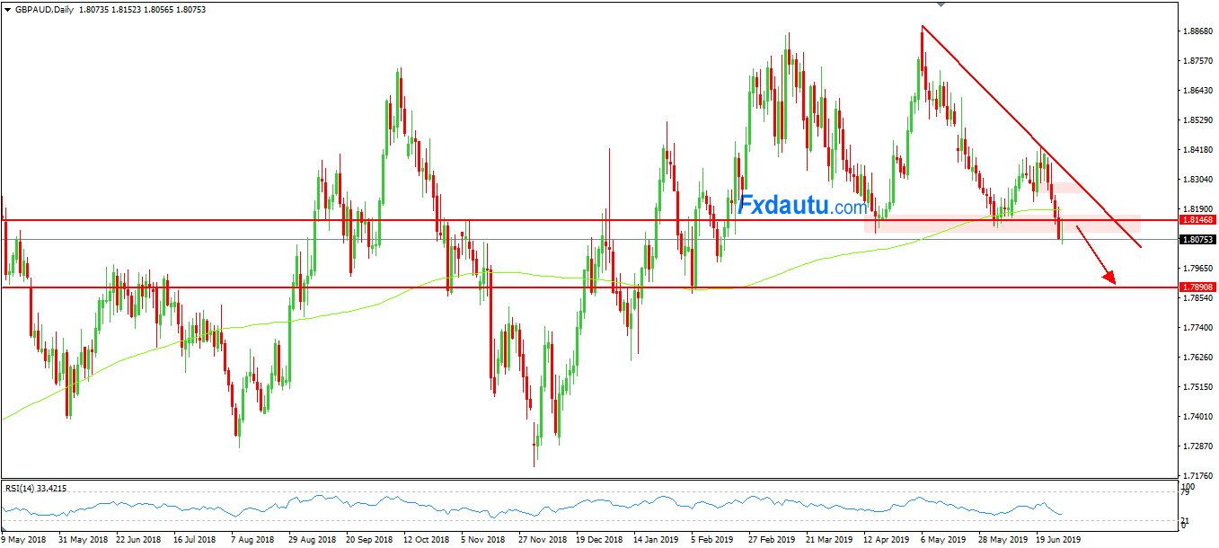 Tỷ giá GBP/AUD cuối tuần qua đã đóng cửa tại 1.8080, qua đó chính thức Breakout Key Support Level 1.8145 của mô hình giá Tam giác giảm – Descending Triangle.