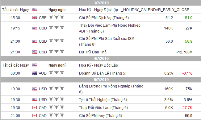 - Thứ 5 – 04/07: Doanh số bán lẻ Úc và Quốc Khánh Mỹ.