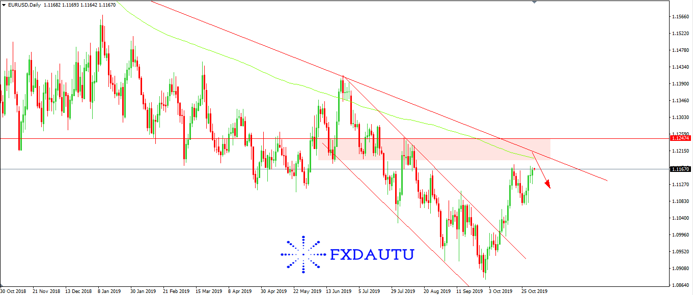 Hiện tại tỷ giá đã gần vùng Resistance Area của Down Trendline dài hạn.
