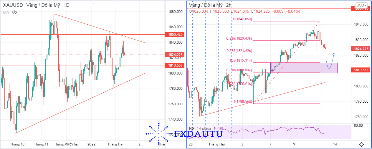 + Nguyên nhân của phiên giảm hôm qua đến từ lạm phát, lạm phát ở Mỹ được công bố 7.5%, cao hơn dự báo 7.1%, và cao nhất trong vòng 40 năm kể từ 1982, do đó cac nhà đầu tư đang lo ngại việc FED sẽ tăng lãi suất vào tháng 3 tới dẫn đến họ bán tháo những tài sản của mình trong đó có vàng.