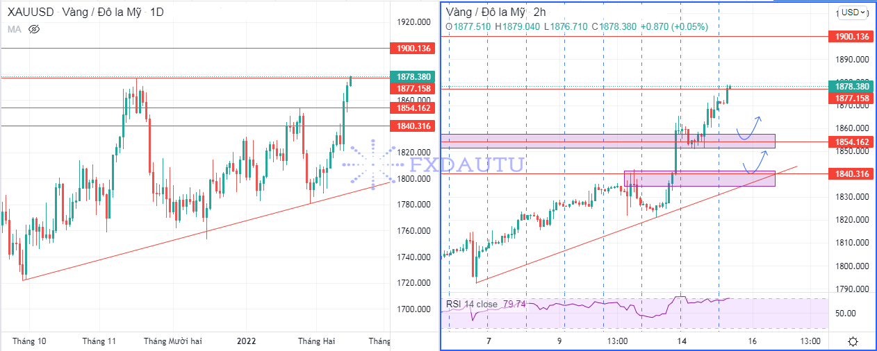 1.XAU/USD có cần 1 nhịp điều chỉnh trước khi lên $1900?