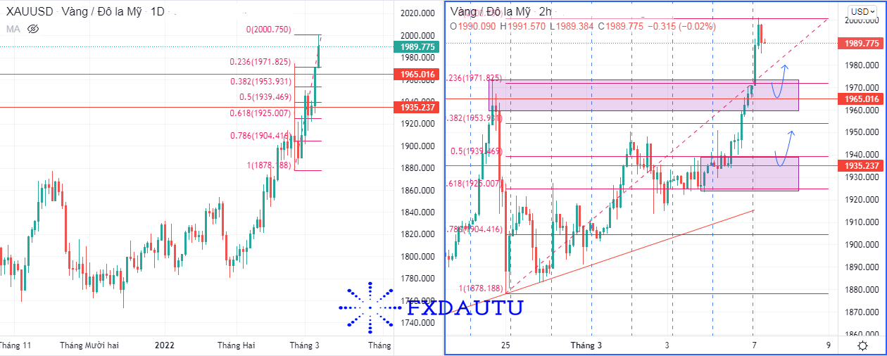 + Sáng nay mở cửa vàng lại có xuất hiện Gap Up 60 pips lên 1975 do cuối tuần biến động chính trị căng thẳng, và hiện đã tăng lên đến tiệm cận mốc tâm lý $2000/oz.