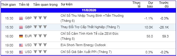 Các sự kiện kinh tế hôm nay đáng chú ý bởi Zew Đức tháng 8, PPI tháng 7 của Mỹ và Thu nhập trung bình của Anh quốc.