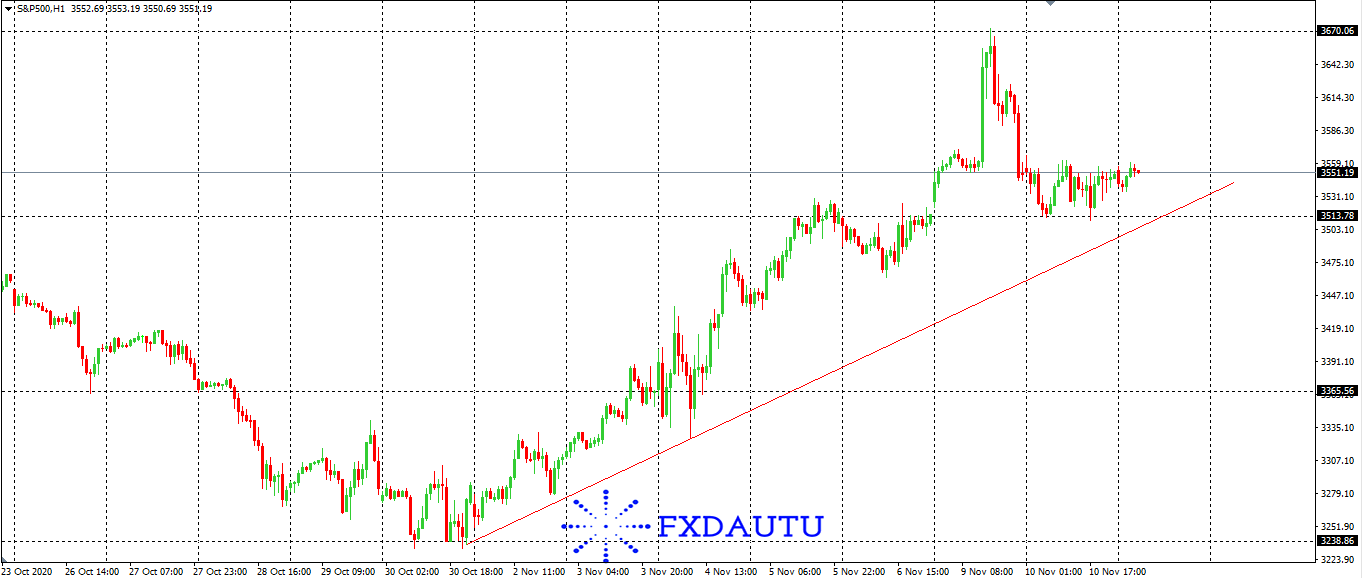 Chỉ số S&P 500 qua chỉ dao động quanh vùng 3520-3550, điều này hoàn toàn cho thấy chứng khoán Mỹ đã phần nào “điềm tĩnh” trở lại sau khi phản ứng có phần “hơi thái quá” ở phiên giao dịch thứ 2 khi tin tốt vaccine được công bố.