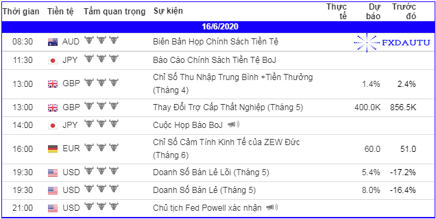 Các sự kiện kinh tế hôm nay tiếp tục xoáy quanh đồng USD với Retail Sales và bài phát biểu của chủ tịch FED – Jerome Powell, bên cạnh đó Chỉ số thu nhập trung bình tháng 4 của Anh và Zew của Đức cũng rất đáng chú ý.