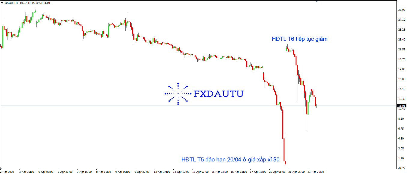 hop-dong-tuong-lai-dau-tho-myHĐTL dầu tháng 5 đã đáo hạn ở xấp xỉ $0, có lúc về âm, HĐTL tháng 6 mở ra tiếp tục giảm mạnh.