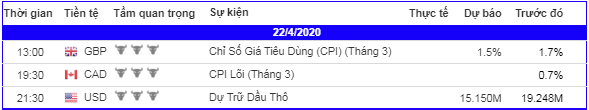 Lịch kinh tế hôm nay tiếp tục đáng chú ý là CPI của Anh và Canada, đặc biệt là dự trữ dầu thô của Mỹ.