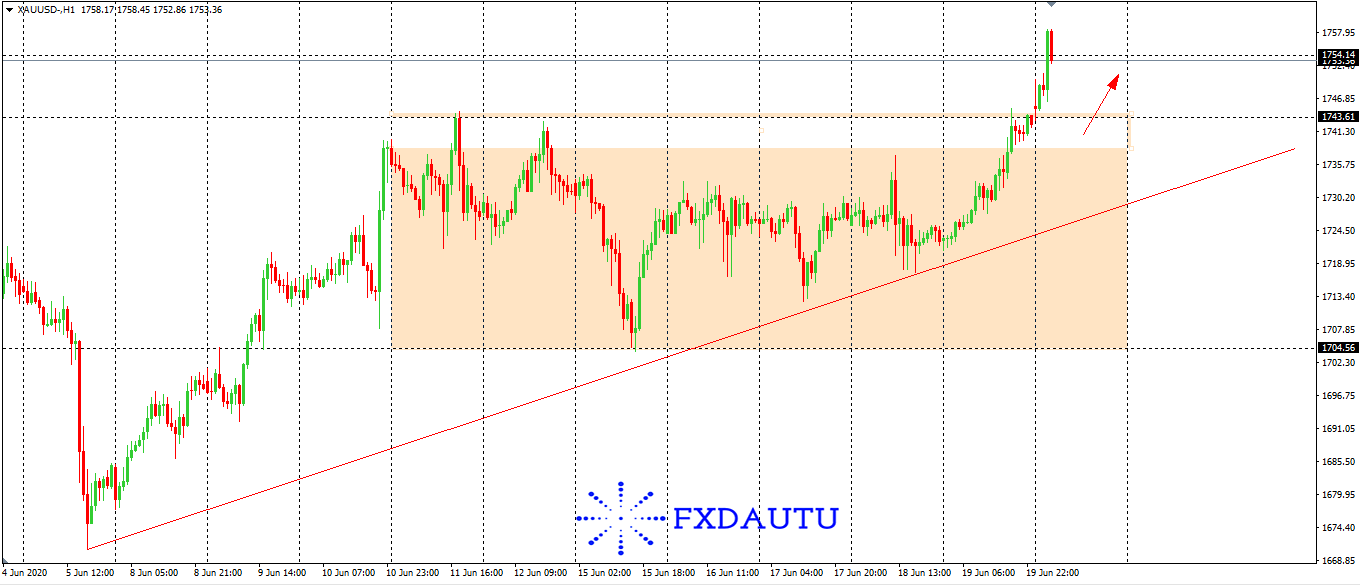 Cùng nhận định thị trường ngoại hối thứ 2 đầu tuần 22/06/2020, hứa hẹn nhiều sự hấp dẫn khi vàng sáng thứ 2 đã tiếp tục đà tăng phi mã vượt mức 1745 và chính thức phá vỡ xu hướng sideways gần 2 tuần vừa qua.