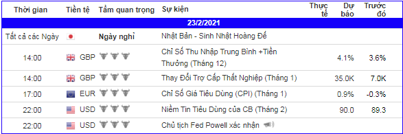 Các sự kiện kinh tế đáng chú ý trong ngày.