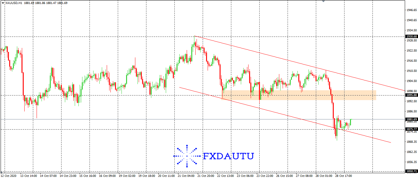 Giá vàng hôm qua đã giảm rất mạnh khi giảm 300 pips từ 1907 xuống 1877, qua đó chính thức rời khỏi mức 1900 và hình thành xu hướng giảm ngắn hạn.