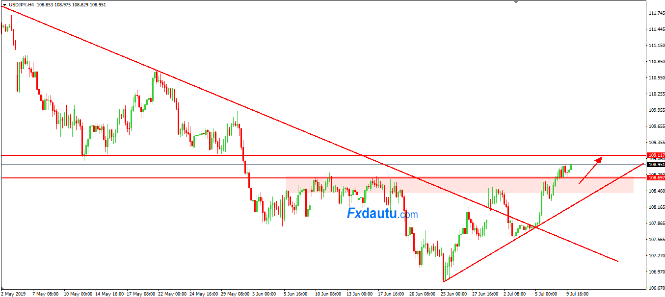 Cặp ngoại hối USD/JPY hôm qua đã có phiên tăng nhẹ từ 108.72 lên 108.85, tuy nhiên chừng đây cũng đủ để Breakout Resistance Level 108.70, hiện tỷ giá đang hương tới Ker Level 109.10.
