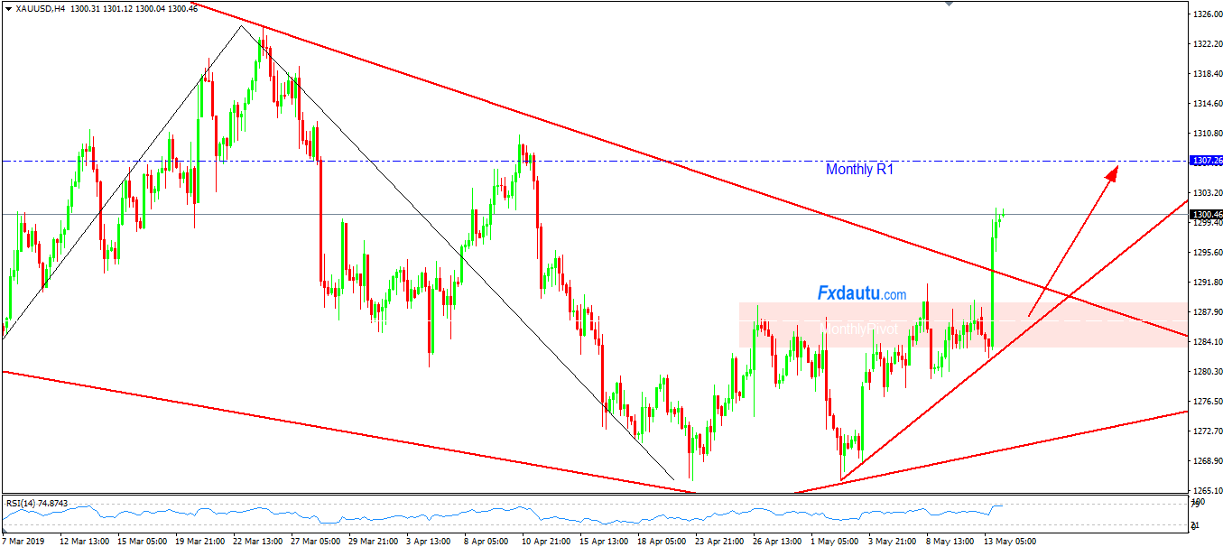 Giá cao nhất phiên hôm qua đạt được 1301.28, qua đó mốc 1300 của Vàng đã không còn giữ vững, đây cũng là mức cao nhất trong 1 tháng qua.