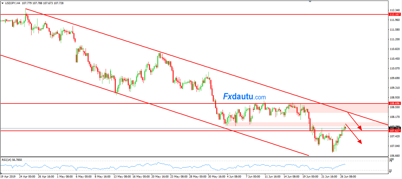 Qua đó tỷ giá đã về đến vùng chờ Short của Resistance Level 107.65 đã Breakout vào ngày 20/6 vừa qua.