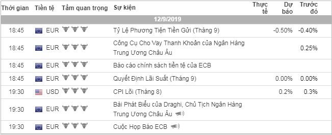 Thị trường tiền tệ hôm nay hứa hẹn sẽ có một ngày sôi động, đặc biệt là đồng Euro khi mà ECB sẽ ra Quyết định lãi suất và báo cáo chính sách tiền tệ. Cùng phân tích một số chiến lược giao dịch Forex đáng chú ý hôm nay 12/09.