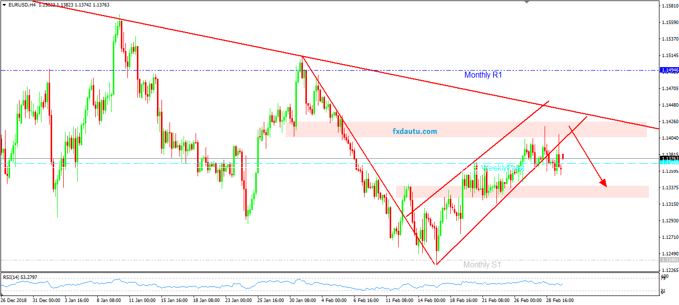 Cặp ngoại hối EUR/USD cuối tuần qua vẫn tiếp tục có một phiên giảm nữa khi giá cao nhất trong phiên thứ 6 đạt được 1.1408 và thấp nhất 1.1353, và đóng cửa tại 1.1362. Qua đó hình thành nến Bearish Pin Bar khung Daily ở 2 ngày liên tiếp, càng củng cố thêm xu hướng giảm.