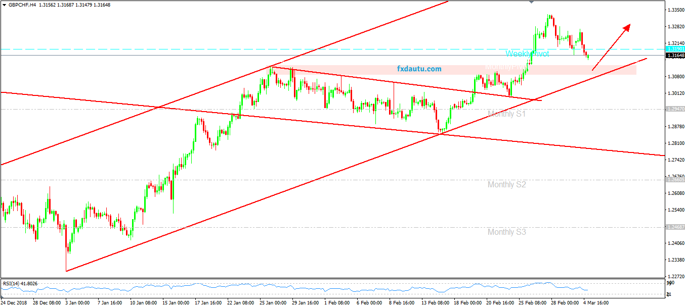 Chiến lược dành cho GBP/CHF hôm nay sẽ chờ giá Pullback về quanh vùng 1.3120 và Long thuận theo xu hướng.