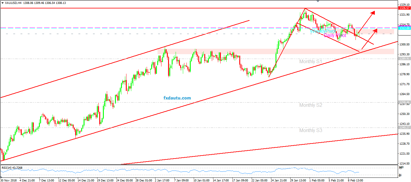 Chiến lược dành cho Vàng hôm nay vẫn sẽ Mua vào tại vùng giá 1308.3 (vùng phá vỡ Resistance của mô hình giá Cờ tăng) thuận theo xu hướng.