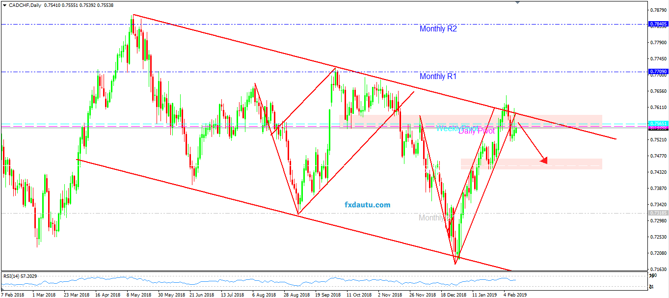 Cặp ngoại hối CAD/CHF hôm qua đã có một phiên dao động với biên độ khá cao (gần 90 pips) với mức giá cao nhất là 0.7607 và thấp nhất tại 0.7519.