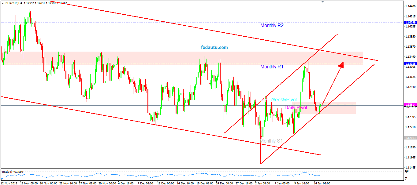 Với xu hướng tăng ngắn hạn trong 2 tuần đầu năm 2019, chiến lược hôm nay dành cho EURCHF là mua tại vùng giá 1.1260, vùng Demand Zone khá đẹp và thuận theo xu hướng tăng ngắn hạn.