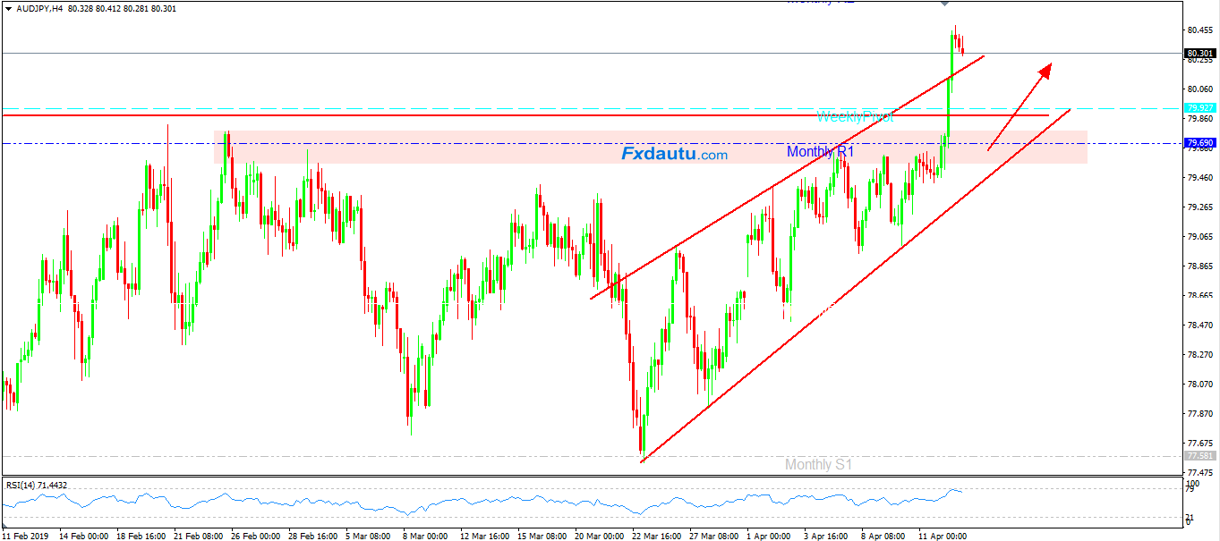 Ở phiên cuối tuần qua chứng kiến phiên tăng mạnh của cặp ngoại hối AUD/JPY, khi tăng khá mạnh từ 79.52 lên đến 80.34 và không có dấu hiệu dừng lại.
