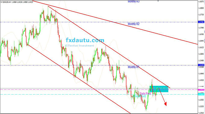 Kèo EURUSD vẫn theo kèo short theo xu hướng downtrend của H4 tại vùng 1.1410.