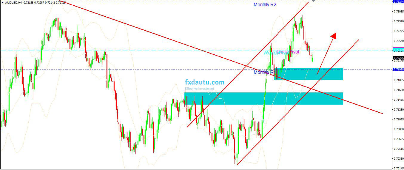 Chiến lược hôm nay vẫn là Buy Limit AUDUSD tại vùng Demand Zone 0.7190.