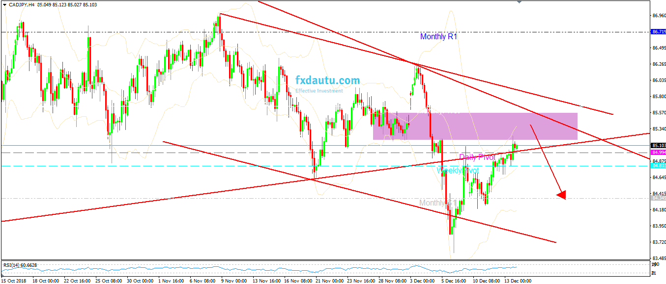 Chiến lược CADJPY hôm nay là chờ bán tại vùng 85.40 theo xu hướng giảm.