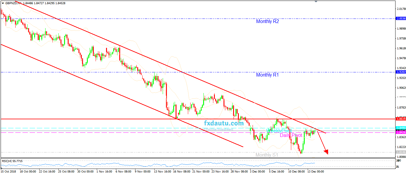Cơ hội cho GBPNZD hôm nay sẽ sell trực tiếp tại vùng giá 1.8460 theo dowtrend.