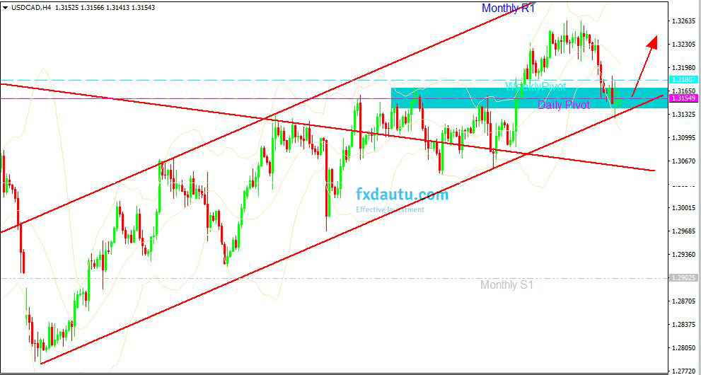 USDCAD chiến lược hôm nay là buy tại vùng 1.3155 theo xu hướng tăng.
