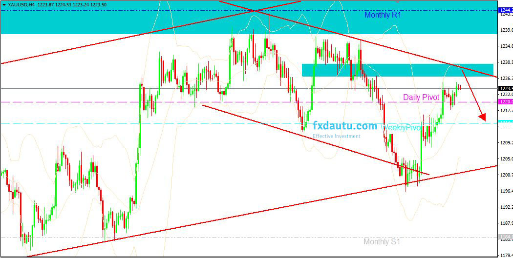 Kèo vàng vẫn như hôm qua, chờ giá lên vùng 1229 và canh bán theo xu hướng giảm.