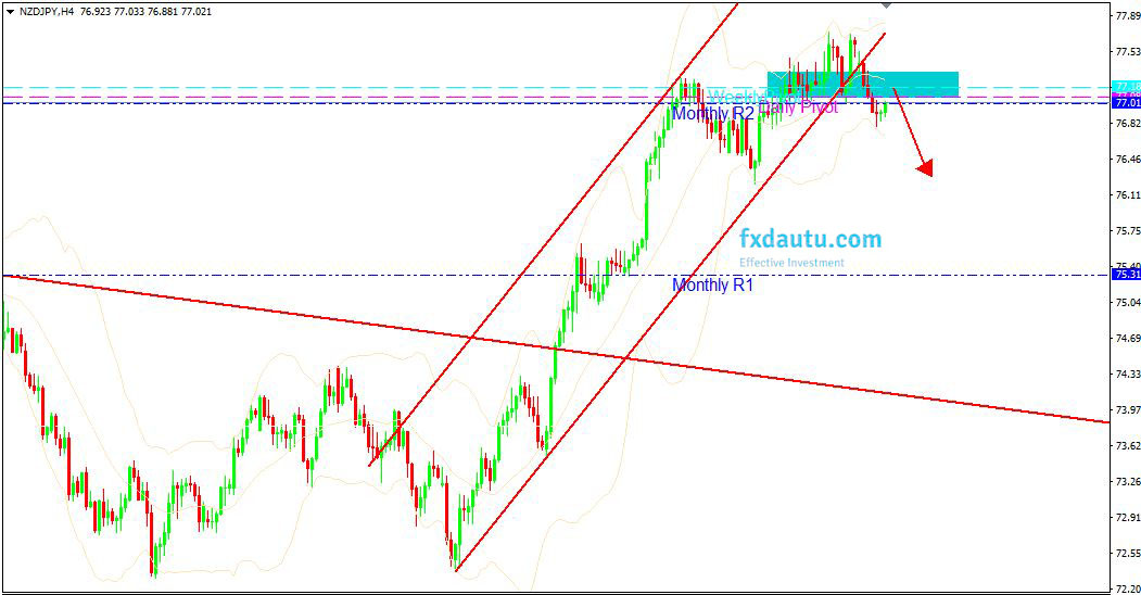 Chiến lược hôm nay sẽ là chờ giá pullback về vùng 77.20 và sell theo xu hướng giảm sắp hình thành.