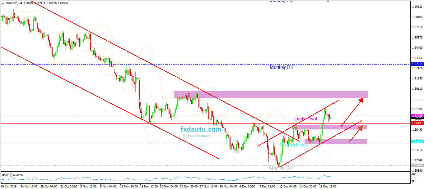 Với việc giá đóng cửa phiên giao dịch hôm qua của GBPNZD đã breakout vùng resistance 1.8620, báo hiệu cho rằng xu hướng downtrend của GBPZND sắp kết thúc và xu hướng uptrend cũng đã hình thành khá rõ.