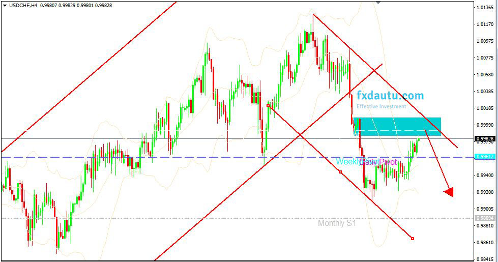 Chiến lược USDCHF hôm nay là sell trực tiếp tại vùng 0.9990 theo xu hướng giảm.