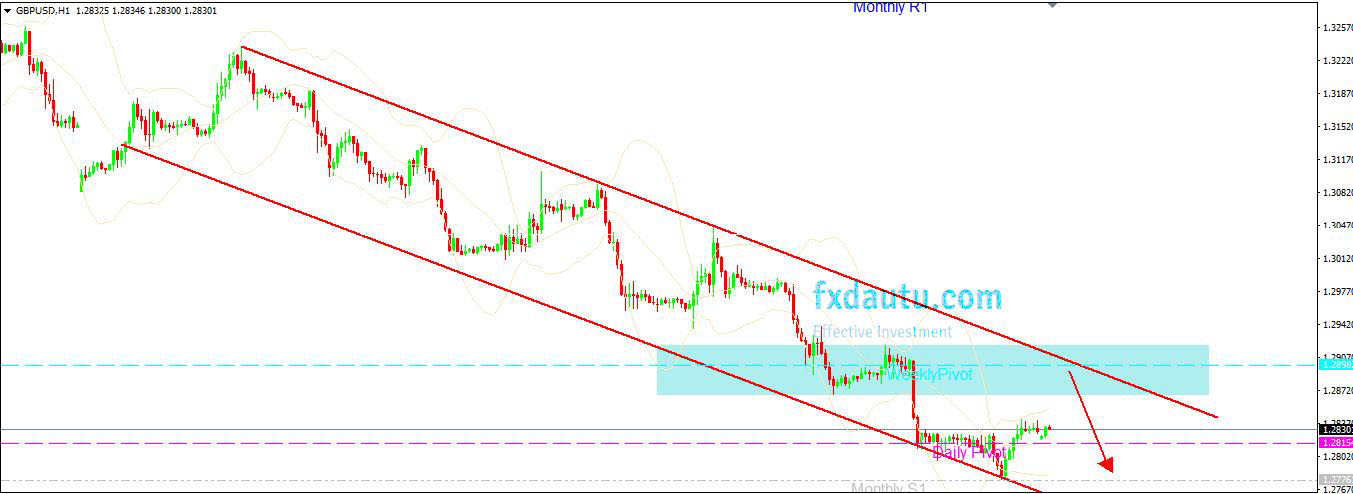 GBPUSD chờ giá pullback về chờ sell theo xu hướng giảm tại vùng resistance cũ 1.2865