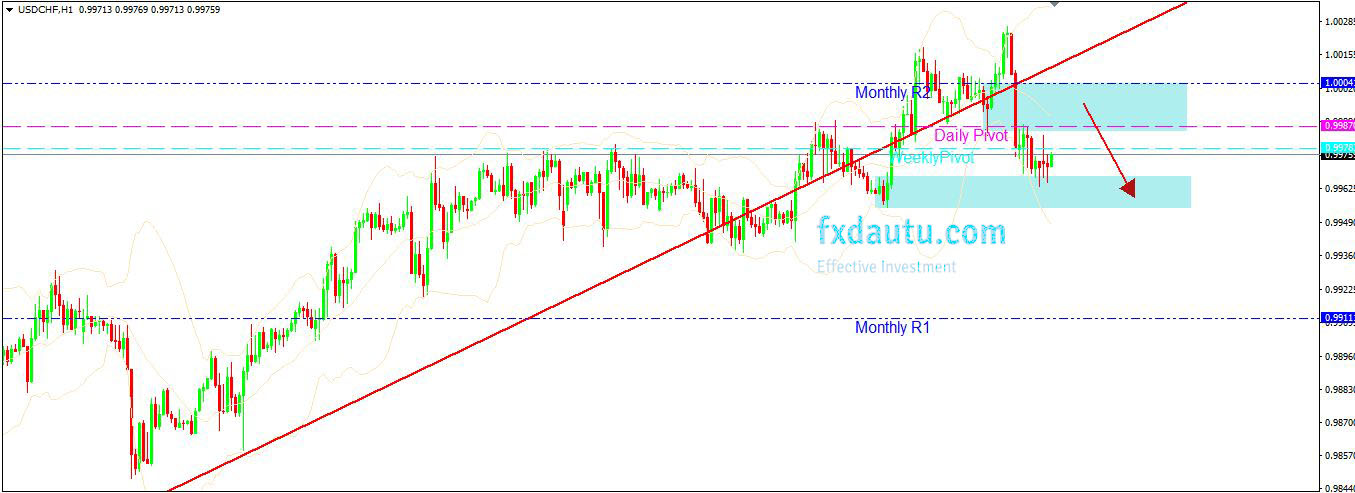 Tương tự USDCAD, kèo USDCHF cũng đã phá trend tăng H4 và phá support 0.9986, chuẩn bị hình thành xu hướng giảm, nên ta có thể chờ giá pullback về vùng resistance 0.9986 để sell ngắn hạn.