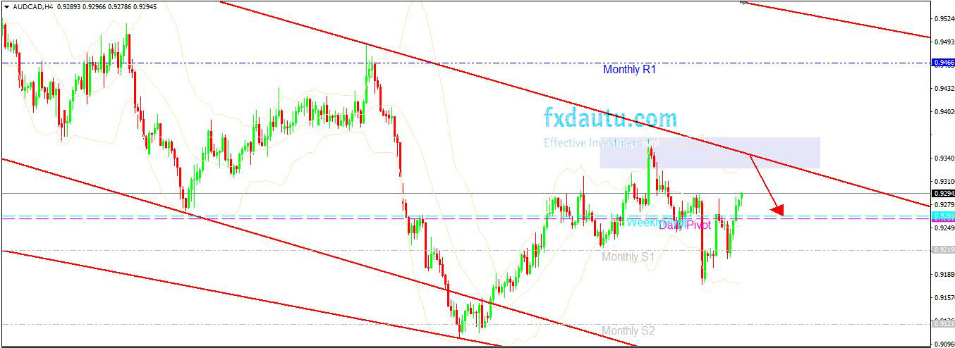 AUDCAD chờ giá tạo mô hình 2 đỉnh H4 và chạm đường trend trên để sell theo xu hướng giảm.