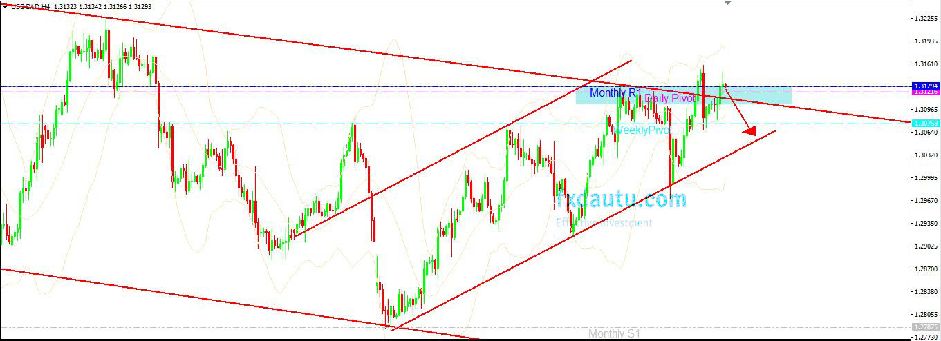 USDCAD chiến lược vẫn là short theo xu hướng D1 về đường dưới trend tăng H4 như hôm qua