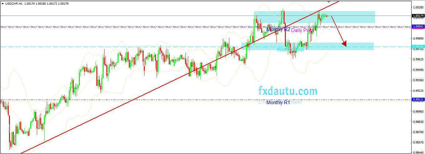 Chiến lược USDCHF hôm nay là sell theo mô hình 3 đỉnh, với Stop Loss khá ngắn.