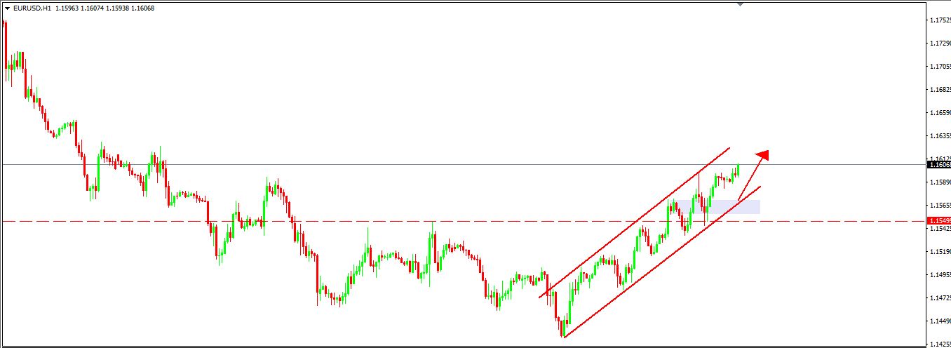 Kèo EU hôm qua bắt được đáy, mình đã tp 60 pips 1/2 lệnh, còn 1/2 lệnh mình trailing stop follow trend. Khi mà giá EU tiếp tục breakout res 1.1594 thì xu hướng hôm nay cho các anh em vẫn là canh buy follow uptrend.