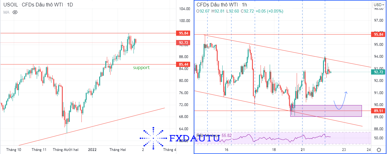 + Dầu thô Mỹ hôm qua đã có phiên tăng $1.5/thùng từ 91 lên 92.5 và sáng nay mở cửa đã có lúc lên đến $94/thùng.