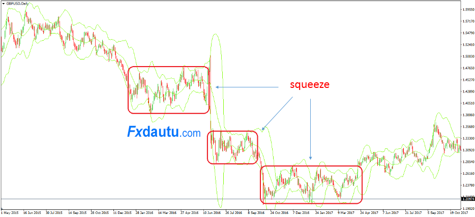 Hoặc lắm lúc các bạn thấy nó bó hẹp như “thắt nút cổ chai”, và độ biến động thị trường thấp.