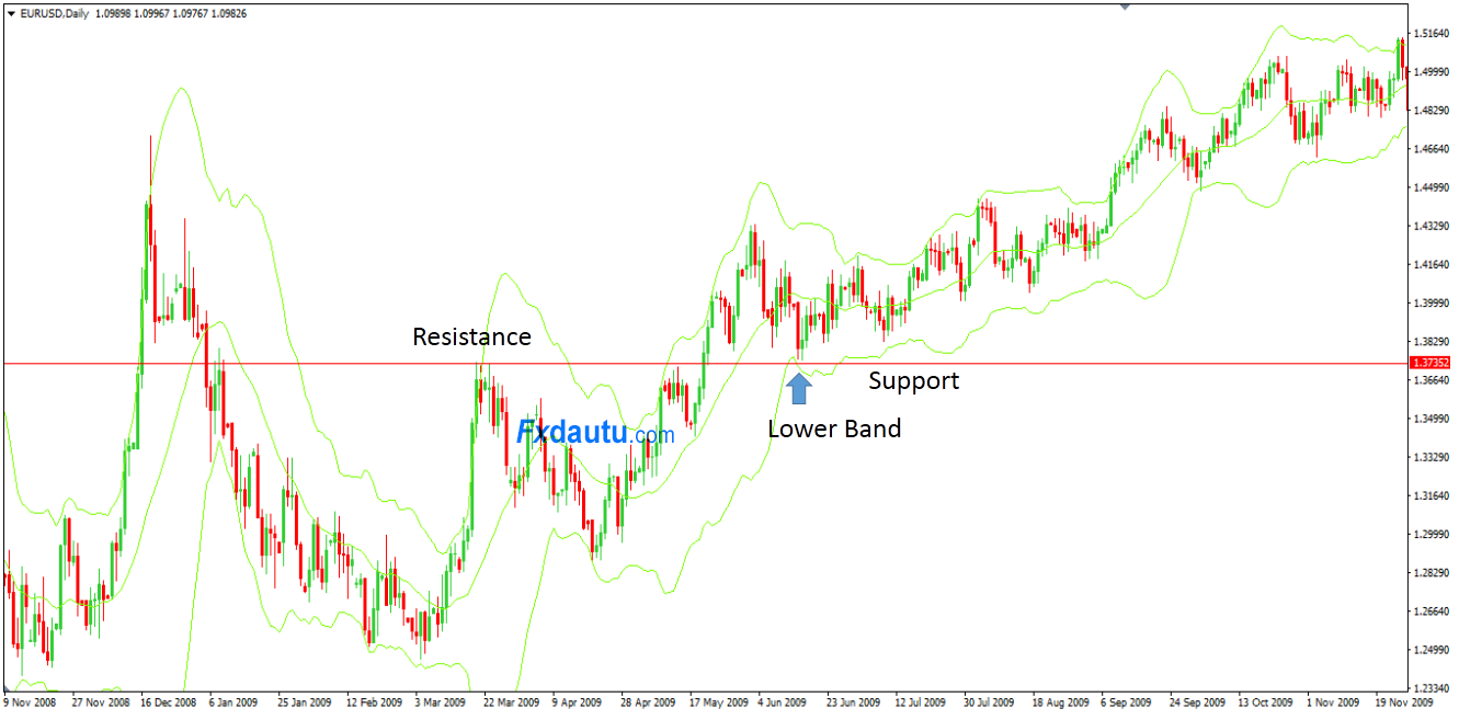 Do đó việc kết hợp Bollinger Bands với Support/Resistance là vô cùng quan trọng.