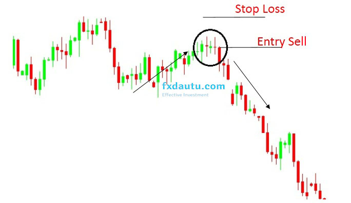 + Vào Entry Short sau khi hình thành 3 nến Doji.