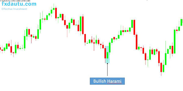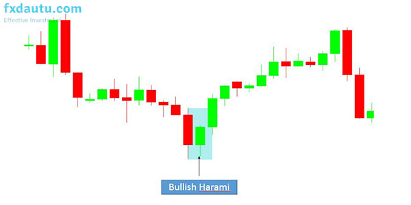 bullish harami đảo chiều lênMột ví dụ Bullish Harami đảo chiều lên.