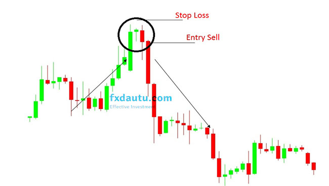+ Vào lệnh Entry Sell sau khi nến xác nhận giảm kết thúc.