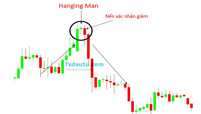 Tuy nhiên, để nến Hanging Man thật sự hiệu quả thì nên chờ cây nến xác nhận giảm sau nó.