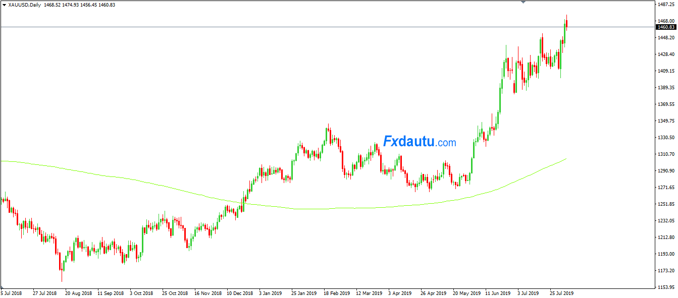 “Vàng đang trên đà hướng tới ngưỡng 1,500 USD/oz và sau đó không có nhiều mức kháng cự cho đến mốc 1,650 USD/oz”, Edward Moya, Chuyên gia phân tích thị trường cấp cao tại Oanda, nhận định.