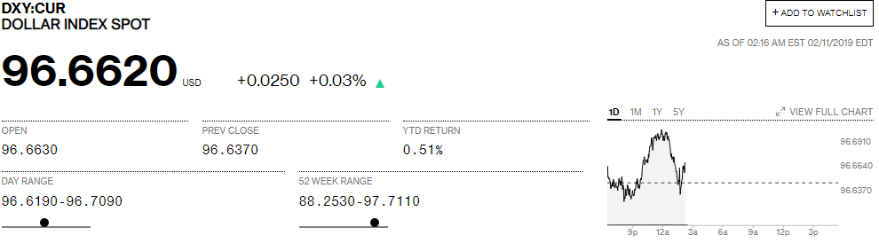 Chỉ số USD Index hiện tăng lên mức 96.66