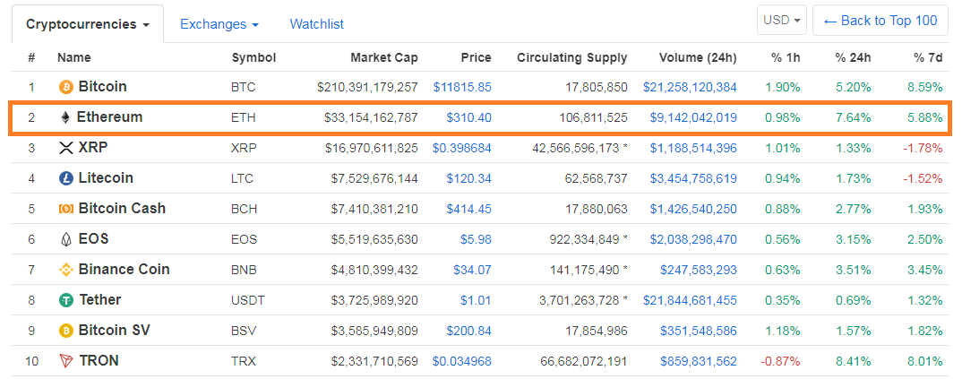 Hiện Ethereum xếp thứ 2 về vốn hóa trên thị trường crypto sau Bitcoin.